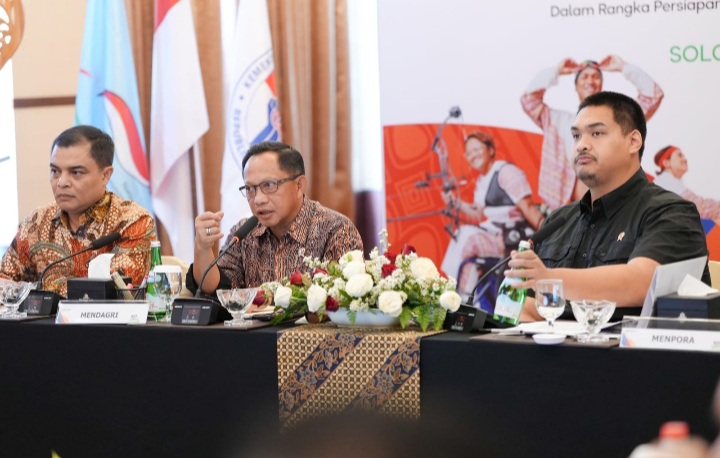 Solo - Menteri Dalam Negeri (Mendagri) Muhammad Tito Karnavian memimpin Rapat Koordinasi (Rakor) Pekan Paralimpiade Nasional (Peparnas) XVII Solo 2024. Rapat ini untuk mematangkan persiapan ajang olahraga bagi atlet disabilitas tersebut, baik mencakup venue, sarana dan prasarana, hingga anggaran. Peparnas XVII Solo 2024 diharapkan menjadi momentum penting dalam membangkitkan semangat inklusivitas dan sportivitas di Indonesia.“Kita Rakor dalam rangka untuk persiapan Peparnas, rekan-rekan
