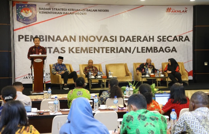 Jayapura - Badan Strategi Kebijakan Dalam Negeri (BSKDN) Kementerian Dalam Negeri (Kemendagri) berkomitmen akan mempermudah pelaporan inovasi daerah di wilayah Papua untuk tahun 2024. Upaya tersebut dilakukan dalam rangka mendorong perkembangan inovasi yang lebih signifikan dan sesuai dengan kebutuhan masyarakat setempat. Dalam sambutannya, Kepala BSKDN Yusharto Huntoyungo menegaskan, untuk daerah-daerah di wilayah Papua, pihaknya akan menghimpun inovasi yang diinisiasi, diujicoba, maupun