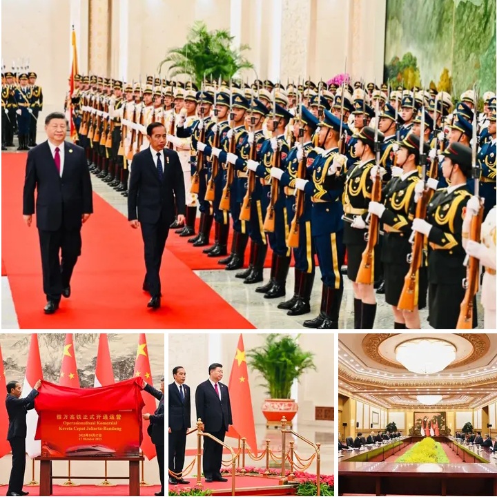 Jakarta - Kunjungan Presiden RI Joko Widodo (Jokowi) ke di Beijing disambut dengan khidmat Presiden China Xi Jinping di Great Hall of the People, Selasa (17/10/2023).Pada tertemuan tersebut, Presiden Jokowi memmbahas hubungan bilateral kedua negara dengan Presiden RRT Xi Jinping dalam 4 (Empat) hal yaitu kerja sama investasi hingga kerja sama antar masyarakat. Pertama, Presiden Jokowi menyampaikan mengenai upaya peningkatan kerja sama investasi terutama untuk baterai EV dan otomotif, pabrik