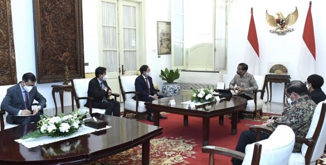 Jakarta - Presiden Joko Widodo menerima kunjungan kehormatan Menteri Luar Negeri (Menlu) Vietnam, Bui Thanh Son, dan delegasi di Istana Merdeka, Jakarta, Rabu (20/07/2022). Dalam pertemuan tersebut, Presiden memberikan tiga arahan kepada Menlu Indonesia Retno Marsudi yang akan melakukan pertemuan komisi bersama dengan Menlu Vietnam."Pertama di bidang perdagangan. Kalau dilihat trennya, maka perdagangan antara kedua negara terus mengalami peningkatan. Target pemenuhan perdagangan USD10 miliar