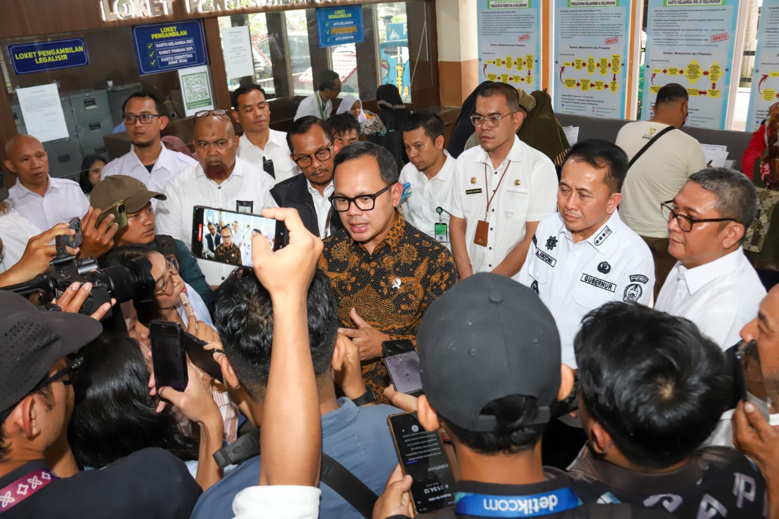 Medan - Wakil Menteri Dalam Negeri (Wamendagri) Bima Arya Sugiarto meninjau langsung pelayanan Dinas Kependudukan dan Pencatatan Sipil (Dukcapil) Kota Medan. Dalam kunjungannya itu, Bima mengapresiasi capaian perekaman Kartu Tanda Penduduk Elektronik (KTP-el) di Kota Medan yang tersisa 0,3 persen.Bima mendorong agar Dinas Dukcapil Kota Medan lebih aktif melakukan jemput bola dalam memberikan pelayanan administrasi kependudukan (adminduk) kepada masyarakat. Sebab, dirinya mengaku masih mendapati