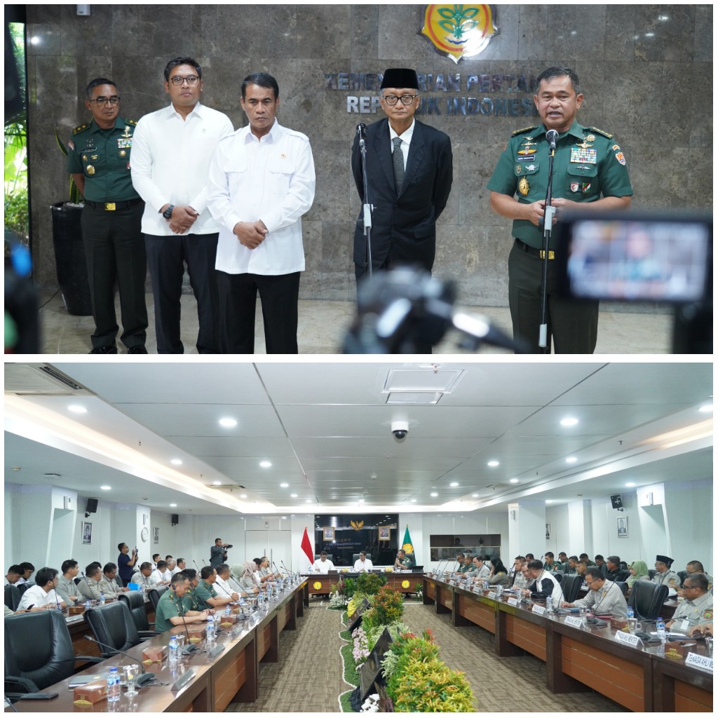 Jakarta - Kepala Staf Angkatan Darat (Kasad), Jenderal TNI Maruli Simanjuntak, M.Sc., menghadiri rapat koordinasi strategis antara Kementerian Pertanian (Kementan) dan Kementerian Pekerjaan Umum Republik Indonesia (Kemen PU RI) yang berlangsung di Pasar Minggu, Jakarta Selatan, Kamis (5/12/2024).Rapat yang dipimpin oleh Menteri Pertanian (Mentan) Andi Amran Sulaiman dan Menteri PU Dody Hanggodo ini bertujuan untuk mempercepat realisasi program swasembada pangan sesuai arahan Presiden RI Prabowo