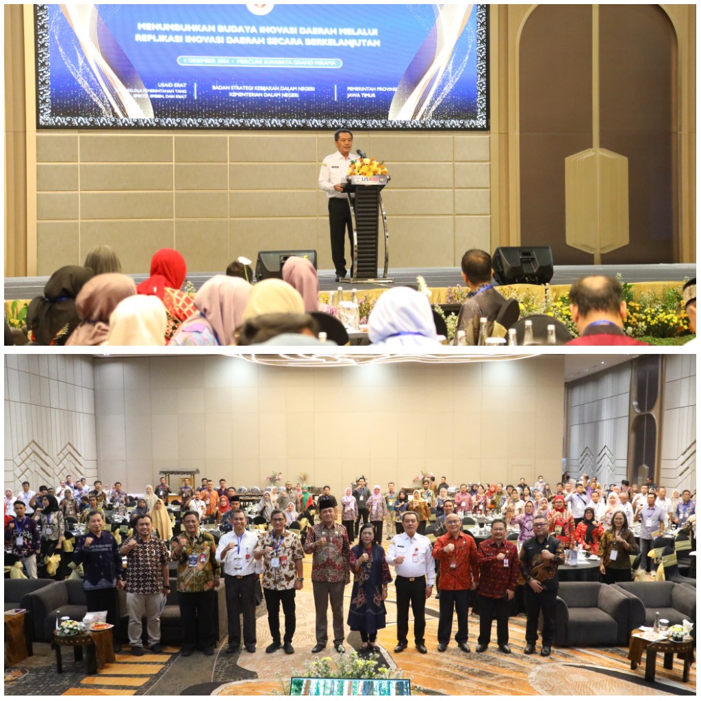Surabaya - Badan Strategi Kebijakan Dalam Negeri (BSKDN) Kementerian Dalam Negeri (Kemendagri) bersama United States Agency for International Development (USAID) dengan program melingkupi Tata Kelola Pemerintahan yang Efektif, Efisien, dan Kuat (ERAT) berkolaborasi memperkuat replikasi inovasi di daerah. Upaya ini dilakukan guna mendukung percepatan pembangunan daerah yang lebih inklusif, berkelanjutan, dan merata.Demikian disampaikan Kepala BSKDN Yusharto Huntoyungo saat membuka kegiatan