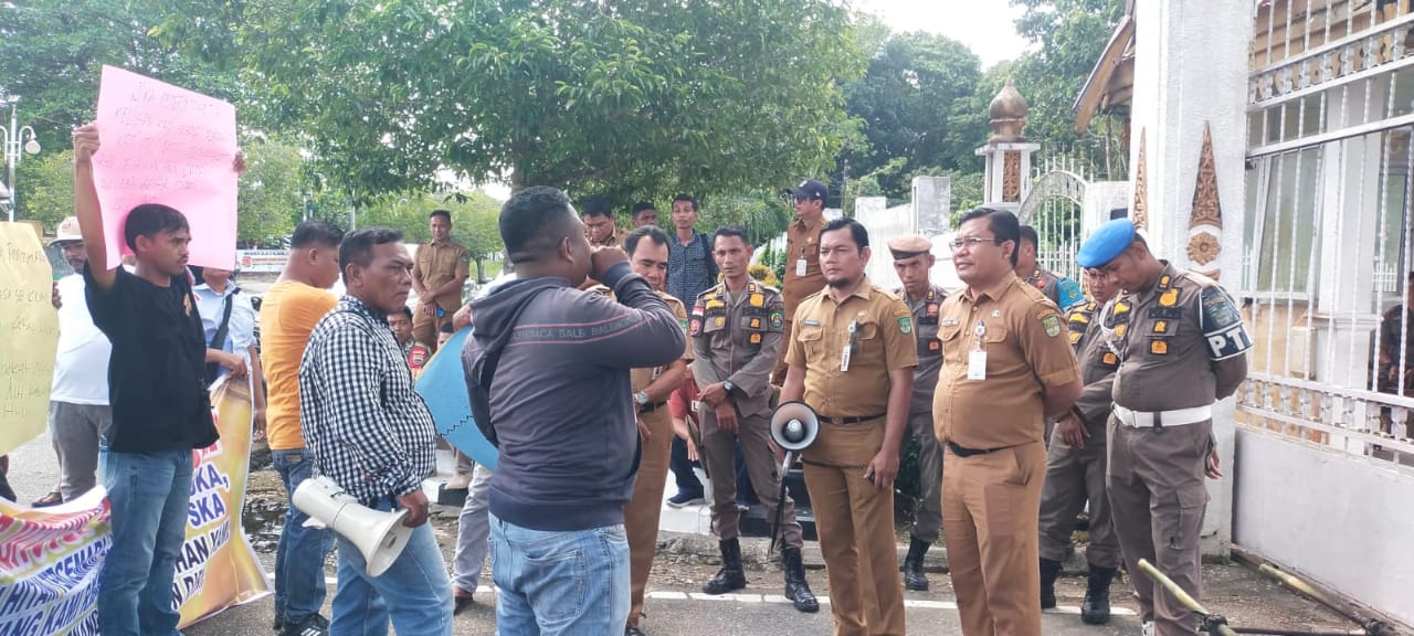 Rohul - Puluhan masyarakat Sungai Kuning Kecamatan Rambahsamo menggeruduk Kantor Bupati Rokan Hulu (Rohul), Senin (30/9/2024), soal polemik limbah Pabrik Kelapa Sawit (PKS) PT Sumatra Karya Agro (SKA) yang sudah berlarut-larut serta tak kunjung ada penyelesaian.Puluhan massa yang mengatasnamakan Aliansi Masyarakat Desa Sungai Kuning (AMDSK) dikoordinatori Irwansyah H, meminta kepada Bupati Rohul H Sukiman untuk mencabut izin dari PKS PT SKA."Kami meminta PKS PT SKA ditutup sementara sebelum