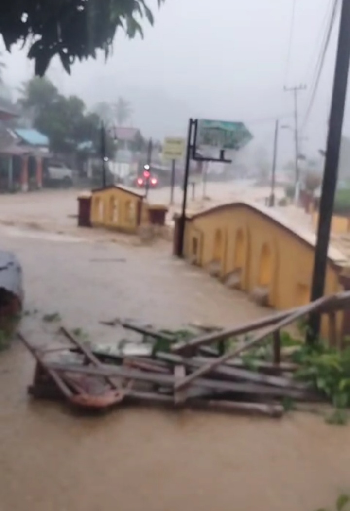 Batang Natal, Madina - Kelurahan Muara Soma Kecamatan Batang Natal Kabupaten Mandailing Natal ( Madina) provinsi Sumatera Utara ( Sumut) dilanda banjir akibat curah hujan yang tinggi. Banjir tersebut dari luapan Aek Sungai Sioru-oru dengan mencapai tinggi lutut orang dewasa bertepatan didepan mako Polsek Batang Natal, kantor kecamatan, Sabtu, (07/09/2024).Informasi dari pengendara roda dua dengan sebutan (abang lubis) asal kecamatan Lingga Bayu menyatakan terjebak banjir mulai dhuhur sekira