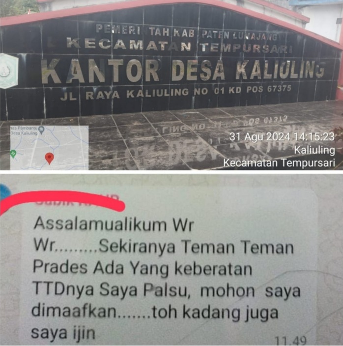 Kaliuling, Lumajang - Awak Media bersama tim mendapatkan informasi yang sangat valid dari para warga Desa KALI ULING Kecamatan Tempur Sari Kabupaten Lumajang Provinsi Jawa Timur, diduga kuat oknum Bendahara Keuangan Desa telah melakukan penyimpangan dan memanipulasi data serta pemalsuan tanda tangan termasuk pembuatan SPJ. Senin, 31/08/2024.Menurut warga yang tidak mau disebut namanya dan sudah menguasakan kepada lembaga kontrol sosial (LPKSM KRESNA CAKRA NUSANTARA) menyampaikan bahwa,