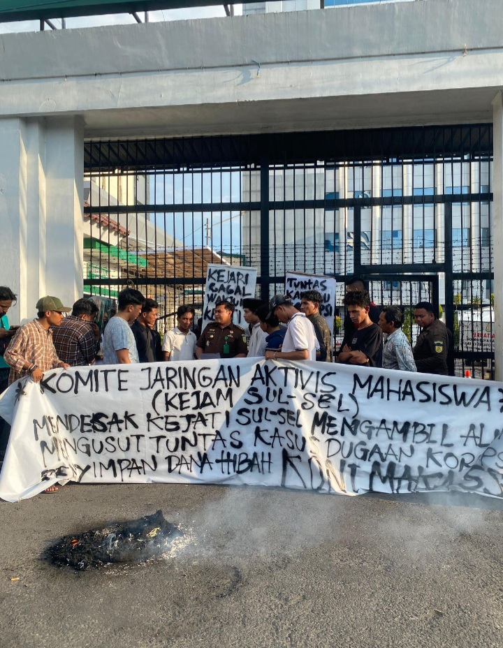 Makassar - Komite Jaringan Aktivis Mahasiswa Sulawesi Selatan (KEJAM - SULSEL) kembali menggelar aksi demonstrasi jilid II di depan Kejaksaan Tinggi (Kejati) Makassar, sulawesi selatan, Rabu (26/06/2024).Dalam aksi tersebut massa demonstran menuntut Kejati Makassar mengambil alih kasus dugaan penyimpangan pengelolaan dana hibah untuk Komite Olahraga Nasional Indonesia (KONI) Makassar.Masa aksi juga mendesak Kejati Makassar untuk segera mengusut tuntas dan segera mengadili para