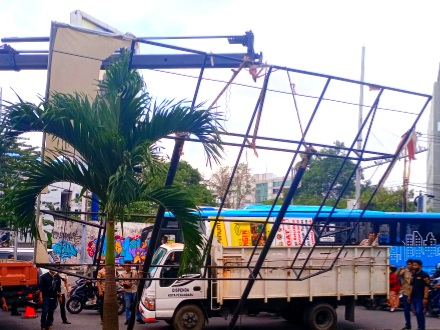 Akhirnya Pemko Lakukan Penertiban Tiang Reklame Ilegal