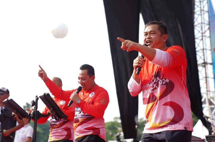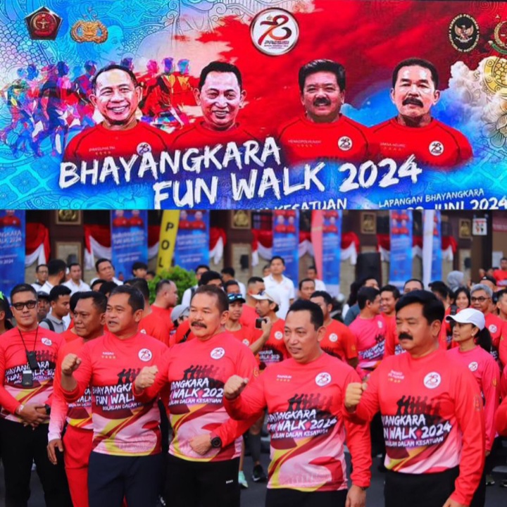 Jakarta - Kepala Kepolisian Negara Republik Indonesia (Kapolri) Jenderal Polisi Listyo Sigit Prabowo bersama dengan Jaksa Agung ST Burhanuddin, Menteri Koordinator Bidang Politik, Hukum, dan Keamanan (Menkopolhukam) Marsekal TNI (Purn.) Hadi Tjahjanto, dan Kepala Staf Angkatan Darat (KSAD) Jenderal TNI Maruli Simanjuntak secara bersama membuka acara Bhayangkara Fun Walk 2024 yang bertajuk “Berjalan Dalam Kesatuan”. Ajang Bhayangkara Fun Walk 2024 ini dihelat rangka menyambut