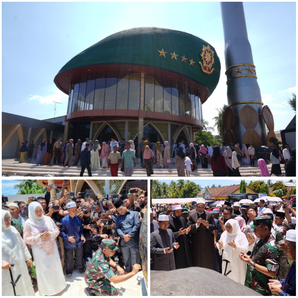 Pangandaran Jabar - Panglima TNI Jenderal TNI Agus Subiyanto didampingi Ketua Umum Dharma Pertiwi Ny. Evi Agus Subiyanto meresmikan Masjid Jami Ar-Rohman dengan menghadirkan penceramah Ustaz Dr. Adi Hidayat, Lc., MA., bertempat di Dusun Haurseah, Cijulang, Pangandaran, Jawa Barat, Sabtu (01/03/2025).Acara peresmian diawali dengan penandatanganan prasasti oleh Panglima TNI dan penandatanganan filosofi Masjid Jami Ar-Rohman oleh Ustaz Dr. Adi Hidayat, Lc., M.A., kemudian dilanjutkan dengan