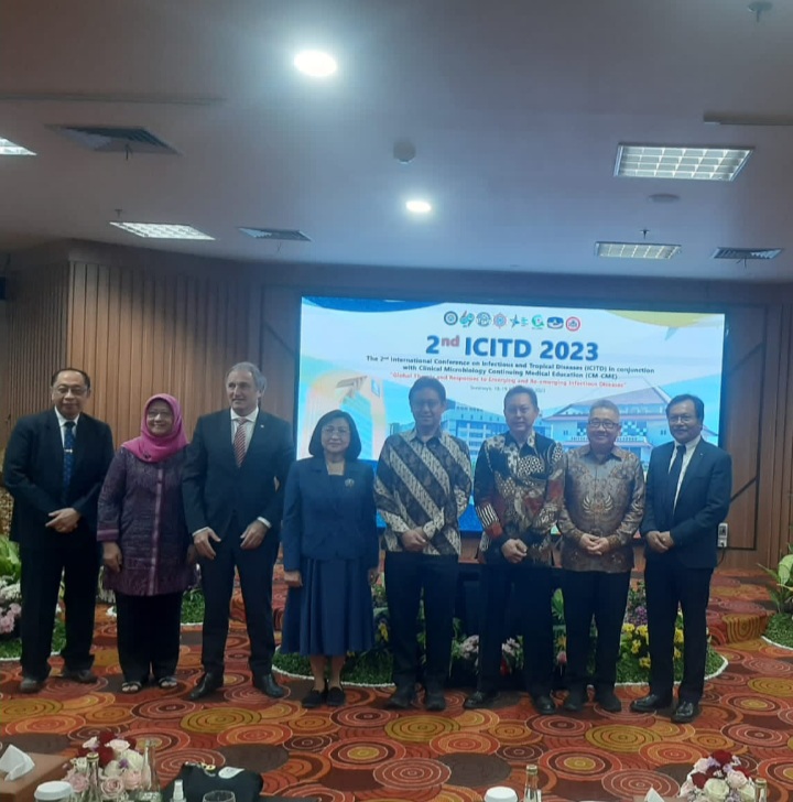 Surabaya - Universitas Airlangga (Unair) melalui Institute of Tropical Disease (ITD), menyelenggarakan "2nd International Conference on Infectious and Tropical Disease 2023 (ICITD 2023)" yang mengambil tema “Global Threats and Responses to Emerging and Re-Emerging Infectious Disease” dan berlangsung di Gedung ASEEC Tower, Kampus B Unair, Surabaya.Konferensi internasional ITD Unair yang kedua tersebut berlangsung dua hari, dari hari ini, Sabtu (18/11/2023) hingga Minggu (19/11/2023)