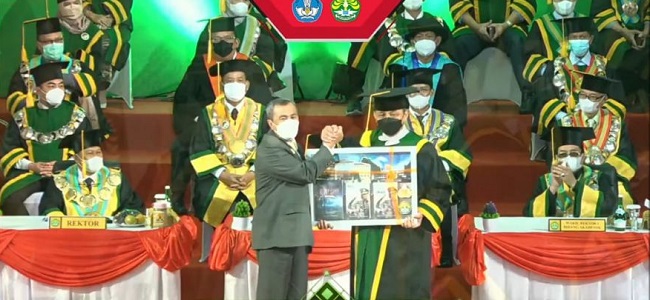 Pekanbaru - Wakapolri Komjen Pol Prof. Dr Gatot Eddy Pramono M.Si dikukuhkan sebagai guru besar kehormatan dalam bidang ilmu hukum (Pemolisian yang Humanis) pada sidang senat terbuka Universitas Riau (UNRI)di Gedung PKM UNRI Gobah, Rabu (20/7/2022).Atas pengukuhan tersebut, Wakapolri Komjen Pol Gatot Eddy Pramono mendapatkan banyak apresiasi dan ucapan selamat dari berbagai pihak. Baik itu dari Kapolri, kementerian/lembaga di Indonesia, bahkan dari Gubernur Riau (Gubri) Syamsuar.Dalam