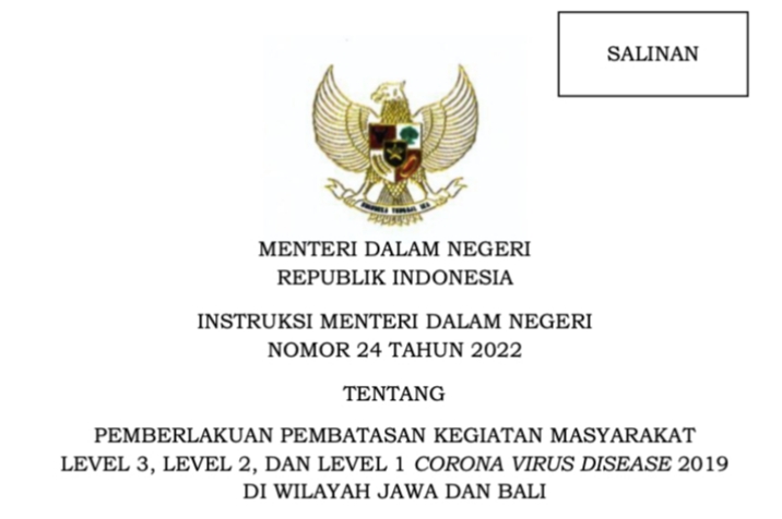 Pekanbaru - Pemerintah kembali melanjutkan kebijakan Pemberlakuan Pembatasan Kegiatan Masyarakat (PPKM) yang berlaku mulai dari tanggal 10 hingga 23 Mei 2022 melalui Instruksi Menteri Dalam Negeri (Inmendagri) pada 9 Mei 2022.Instruksi Menteri Dalam Negeri (Inmendagri) yang ditandatangani Menteri Dalam Negeri (Mendagri) Tito Karnavian ini tertuang dalam Inmendagri Nomor 24 Tahun 2022 tentang Pemberlakuan Pembatasan Kegiatan Masyarakat Level 3, Level 2, dan Level 1 Corona Virus Disease 2019 di