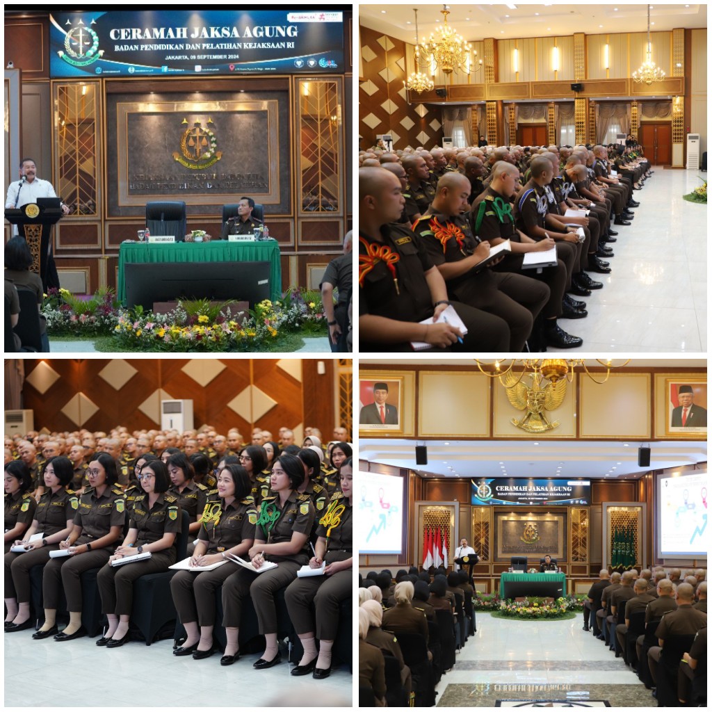 Jakarta - Jaksa Agung ST Burhanuddin memberikan ceramah kepada Siswa Pendidikan dan Pelatihan Pembentukan Jaksa (PPPJ) Angkatan LXXXI (81) Gelombang I Tahun 2024, di Badan Pendidikan dan Pelatihan Kejaksaan Republik Indonesia, Senin (09/9/2024).dengan materi ceramahnya yang berjudul “Jaksa PRIMA”. Adapun yang dimaksud dengan PRIMA adalah PROFESIONAL, RESPONSIF, INTEGRITAS, berMORAL dan ANDAL yang dilandasi dengan nilai-nilai TRI KRAMA ADHYAKSA Menurut Jaksa Agung, PRIMA dalam hal