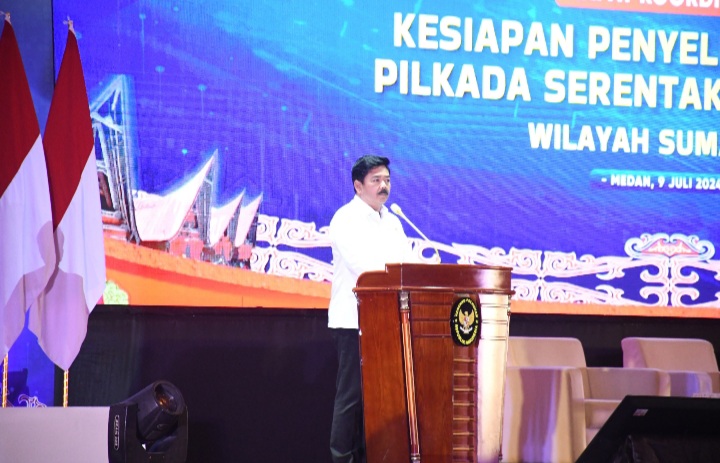 Medan - Pangdam I/BB, Mayjen TNI Mochammad Hasan menghadiri Rakor Kesiapan Penyelenggaraan Pilkada Serentak Tahun 2024 Wilayah Sumatera bertempat di Regale International Convention Centre Jl. Adam Malik Medan, Selasa (9/7/2024).Rakor yang dibuka Menkopolhukam, Hadi Tjahjanto itu juga dihadiri Mendagri, Tito Karnavian, Plt Ketua KPU RI, M Afifudidin, Ketua Bawaslu RI, Rahmad Bagja, Kapolri diwakili Asops Kapolri, Irjen Pol Verdianto Iskandar Bitticaca, Panglima TNI diwakili Pangkogabwilhan I,