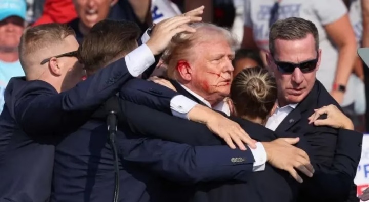 Jakarta - Mantan Presiden Amerika Serikat (AS) Donald Trump ditembak saat kampanye di di Pennsylvania, Minggu (14/7/2024).Di lansir dari berbagai nara sumber menyebutkan, Donald Trump ditembak dari atas atap sebuah bangunan di luar lokasi kampanye.Jaksa Wilayah Butler County Richard Goldinger mengatakan dia diberitahu oleh kepala detektif bahwa penembak berada di sebuah gedung yang berdekatan dengan properti tersebut.Setelah tertembak, Donald Trump langsung dibawa keluar oleh Secret
