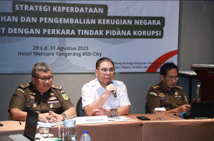 Jakarta - Sekretaris Jaksa Agung Muda Tindak Pidana Khusus (SesJAM-Pidsus) Andi Herman mewakili Jaksa Agung Muda Tindak Pidana Khusus Dr. Febrie Adriansyah menjadi Keynote Speaker pada acara Focus Group Discussion (FGD) Pusat Strategi Kebijakan Penegakan Hukum dengan tema "Peran Bidang Tindak Pidana Khusus untuk Penyelamatan dan Pemulihan Keuangan Negara dalam Perspektif Implementasi Peraturan Kejaksaan RI Nomor 7 Tahun 2021 tentang Pedoman Pelaksanaan Penegakan Hukum, Bantuan Hukum,