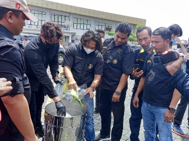 Pekanbaru - Ketua DPC GRANAT Kota Pekanbaru Mulyadi Ranto Manalu SH MH berserta tim hadiri pemusnahan barang bukti narkoba di Mapolda Riau, Kamis (29/9) siang.