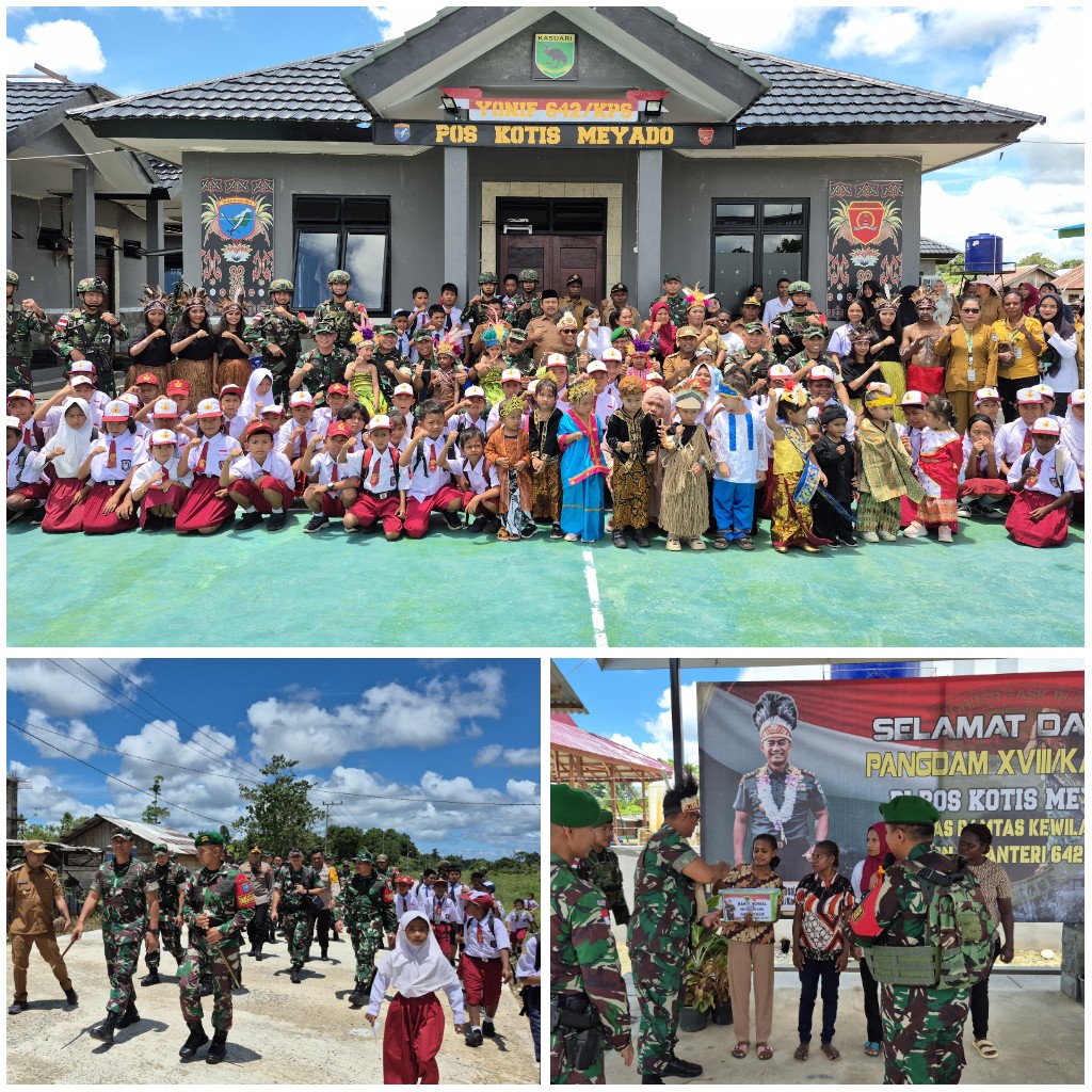 Meyado - Tingkatkan Moril anggota dan memastikan langsung kondisi Prajurit yonif 642/Kps, Pangdam XVIII/Kasuari Mayjen TNI Jimmy Ramoz Manalu, S.Hub.Int.M.H.I bersama Aslog Kasad Mayjen TNI Adisura Firdaus Tarigan serta pejabat utama Kodam XVIII/Kasuari mengunjungi Pos Kotis Satgas Pamtas RI-PNG Kewilayahan Papua Barat Yonif 642/Kps, Selasa (11/03/2025).Dalam Kunjungannya, diawali dengan meninjau kegiatan Bakti Sosial di Pos Kotis yaitu Pelayanan Kesehatan serta Penurunan Stunting, dilanjutkan