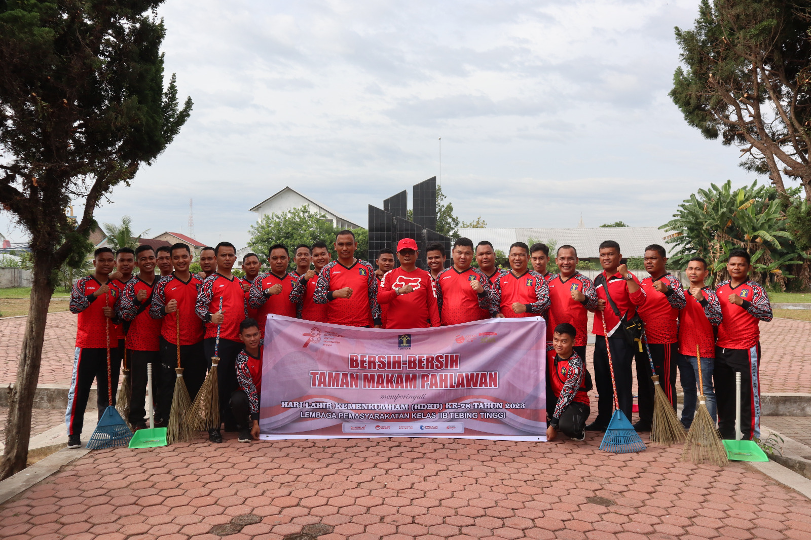 Tebing Tinggi - Sekitar 40 (empat puluh) orang pegawai Lembaga Pemasyarakatan (Lapas) Kelas IIB Tebing Tinggi meramaikan Taman Makam Pahlawan (TMP) Kota Tebing Tinggi yang terdiri dari Kepala Lembaga Pemasyarakatan (Kalapas), pejabat struktural, staf dan petugas regu pengamanan guna menggelar kegiatan bersih-bersih TMP.Kalapas Tebing Tinggi Anton Setiawan mengatakan, pembersihan Taman Makam Pahlawan (TMP) ini salah satu rangkaian kegiatan yang melengkapi semarak peringatan Hari Kementerian