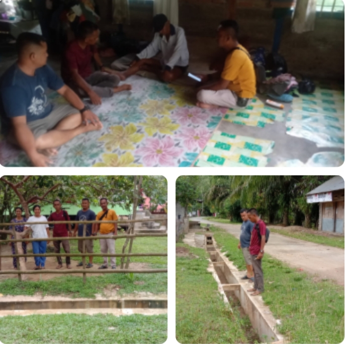 Kuansing - Kepala Desa Siberakun Ardilis, didampingi Beni Ardi selaku TPK, memperlihatkan lokasi pembangunan saluran drainase yang di bangun Pemdes Siberakun dari anggaran Dana desa Tahun 2023 di pemukiman warga.