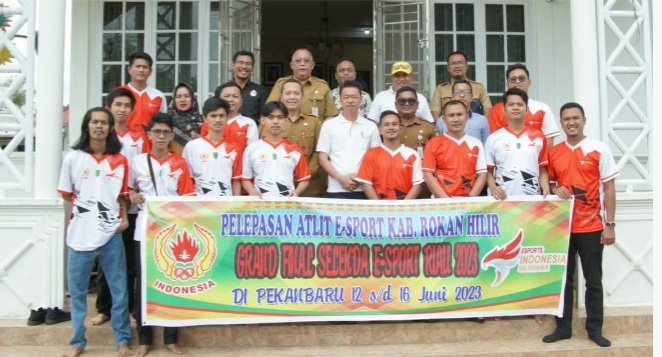Rohil - Mendukung pengembangan kegiatan olahraga di kabupaten Rohil, Bupati Afrizal Sintong lepas keberangkatan Elektronik Sport Indonesia (ESI) di mess Pemda, Selasa (11/7/2023).Pelepasan tersebut dalam rangka mendukung ESI Rohil untuk bertanding mobile legend untuk seleksi pra Pekan Olahraga Nasional (PON) 2024 mendatang di Provinsi Sumut dan Aceh. Pertandingan pra PON akan di gelar di Pekanbaru pada 12 sampai 16 Juli di Pekanbaru.Hadir pada pelepasan tersebut, Ketua KONI Rohil Syamsuri,
