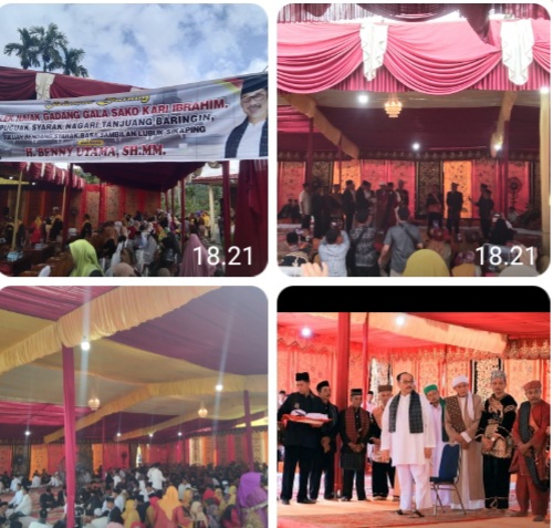 Pasaman - Prosesi adat Naiak Gadang Gala Sako Kari Ibarahim, Pucuak Syarak Nagari Nagari Tanjuang Baringin, dilaksanakan di Rumah Gadang Sako Kari Ibrahim, Kampuang Sumua, Lubuak Sikapiang, Sabtu (22/7). Hati lapang paham tak sampik, Pandai manimbang jo manaka, Walau batenggang di nan rumik, ndak bakisa di nan