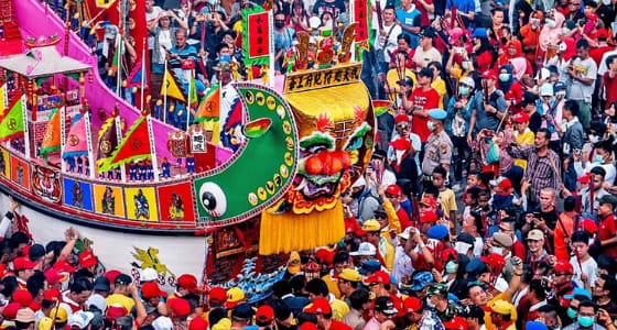 Rohil - Dibawah cuaca berawan, ribuan mata memandangi puncak ritual Bakar Tongkang di di Kelenteng Ing Hok King, Bagansiapiapi Kabupaten Rokan Hilir, Riau. Arak-arakan lautan manusia membawa dupa mengikuti replika kapal tongkang disepanjang jalan Kelenteng menuju tempat pembakaran. Setiap gerakan perjalanan menggambarkan kisah leluhur nenek moyang mereka dan memanjatkan doa untuk dewa-dewa yang telah menyelamatkan mereka saat melarikan diri dari Provinsi Fujian, Tiongkok pada 1883