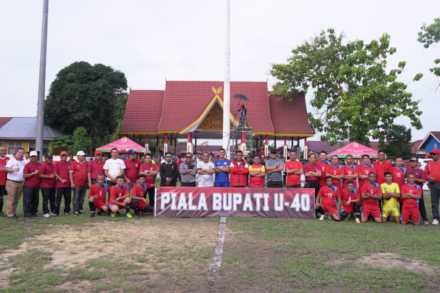 Pelalawan - Bupati Pelalawan, H Zukri membuka secara resmi Turnamen Bupati Cup U40 di lapangan sepak bola Tongah Kinci Tahun 2023, Jumat (2/6 2023).Tampak hadir dalam kegiatan ini Wakil Bupati H. Nasarudin, S.H., M.H, Ketua DPRD Pelalawan Baharudin, S.H., M.H, Kapolres Pelalawan AKBP Suwinto, S.H., S.I.K, Dandim 031/KPR Letkol ARH Mulyadi S.IP, Para Asisten dan Pimpinan OPD Pelalawan, dan seluruh undangan serta team yang ikut bertanding.Kegiatan turnamen U40 dimulai dengan menyanyikan lagu
