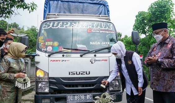 Jombang - Gubernur Jawa Timur Khofifah Indar Parawansa melepas ekspor perdana 12 ton kopi excelsa komoditas khas Wonosalam Jombang ke Malaysia, Selasa (10/5/2022). .Khofifah mengajak kaum muda mengembangkan komoditas Kopi di daerah Jawa Timur komoditas kopi Jawa Timur sangat berpotensi besar."Terutama bagi mereka yang memang memiliki passion bergelut di bidang bisnis komoditas kopi, agar terus membangin jejaring perluasan pasar dan mengekspornya ke mancanegara," ujar Khofifah Khofifah