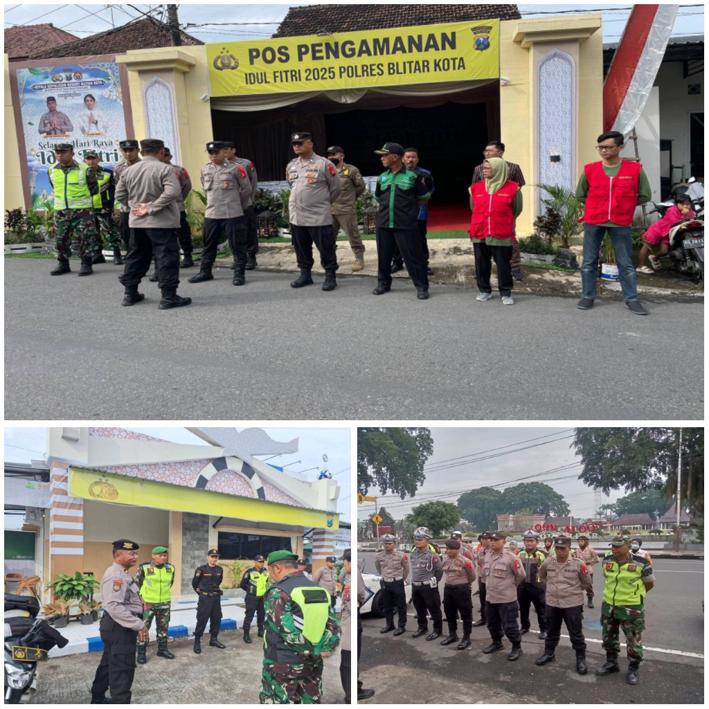 Blitar - Menjelang perayaan Idul Fitri 1446 H Th. 2025, TNI dan Polri di wilayah Blitar Raya bersinergi dalam pelaksanaan Pos Pengamanan (POSPAM) guna menjaga situasi keamanan dan ketertiban masyarakat (kamtibmas). Kegiatan ini berlangsung di beberapa titik strategis, yakni di depan Aloon-Aloon Kota Blitar, Aloon-Aloon Kanigoro Kabupaten Blitar dan Pos Wisata Candi Penataran, Minggu (23/3/2025).Sinergi antara TNI dan Polri dalam pengamanan ini bertujuan untuk memberikan rasa aman dan nyaman