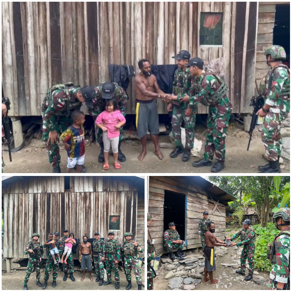 Membramo Tengah - Mempererat tali persaudaraan di Bulan Ramadhan, Pos Kelila Satgas Pamtas Kewilayahan Yonif 641/ Bru anjangsana menyapa warga Distrik Kelila, Kabupaten Membramo Tengah, Papua Pegunungan, Sabtu (22/03/2025).Danpos Kelila Kapten Inf Rio Bayu mengatakan bahwa tujuan mempererat tali silahtuhrami dan persaudaraan dengan masyarakat di kampung kelila salah satunya melalui kegiatan anjangsana atau berkunjung ke rumah warga sekaligus membantu membersihkan halaman rumah masyarakat