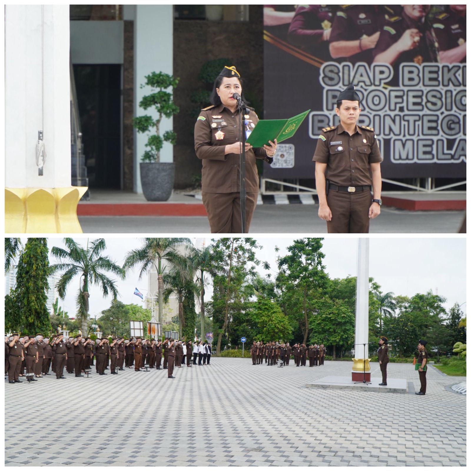 Pekanbaru - Asisten Pengawasan Kejaksaan Tinggi Riau Ayu Agung, S.H., S. Sos., M.H., M. Si (HAN) menjadi Penerima Apel Kerja Pagi Kejaksaan Tinggi Riau, di halaman Kantor Kejaksaan Tinggi Riau, Senin (08/1/2024).Apel Kerja Pagi Kejaksaan Tinggi Riau ini diikuti oleh para Asisten, para Koordinator, para Kasi dan Jaksa Fungsional beserta seluruh Pegawai dan Honorer pada Kejaksaan Tinggi Riau.Dalam amanatnya Asisten Pengawasan Kejaksaan Tinggi Riau Ayu Agung, S.H., S. Sos., M.H., M. Si (HAN)