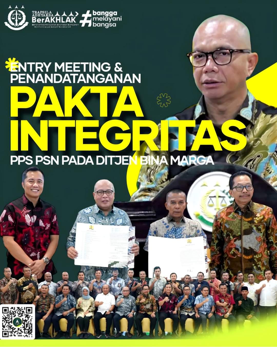 Pekanbaru - Kepala Kejaksaan Tinggi Riau Akmal Abbas, S.H., M.H didampingi Wakil Kepala Kejaksaan Tinggi Riau Hendrizal Husin, SH., MH dan Asisten Intelijen Kejaksaan Tinggi Riau Marcos M. M Simaremare, S.H., M.Hum bersama Kepala Balai Pelaksana Jalan Nasional (BPJN) Riau Ir. T. Yuliansyah, MT dan Penyedia Jasa mengikuti kegiatan Entry Meeting dan Penandatanganan Pakta Integritas Pengamanan Pembangunan Strategis(PPS) Proyek Strategis Nasional (PSN) pada Ditjen Bina Marga yang digelar secara