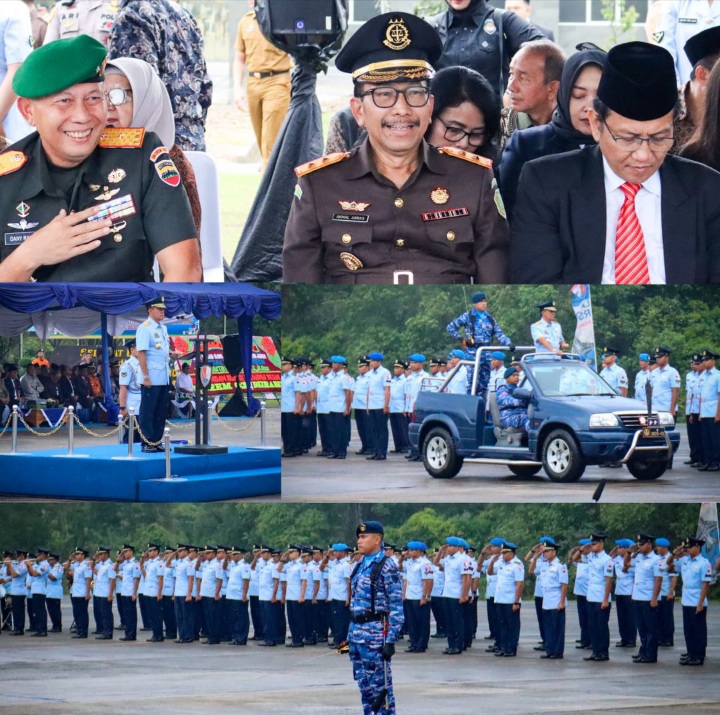 Pekanbaru - Kepala Kejaksaan Tinggi (Kejati) Riau Akmal Abbas, S.H M.H, menghadiri serah terima jabatan (sertijab) Komandan Lanud Roesmin Nurjadin dari Marsma TNI Mohammad Nurdin kepada Marsma TNI Feri Yunaldi, S.E., M. Han.Adapun sertijab tersebut dipimpin oleh Panglima Komando Operasi Udara I (pangkoopsud) Marsekal Muda TNI Bambang Gunarto, S.T., M.M., M. Sc, yang dilaksanakan di Apron Base Ops Lanud Roesmin Nurjadin, Kota Pekanbaru, Provinsi Riau, Selasa (21/11/2023).Dalam amanatnya,