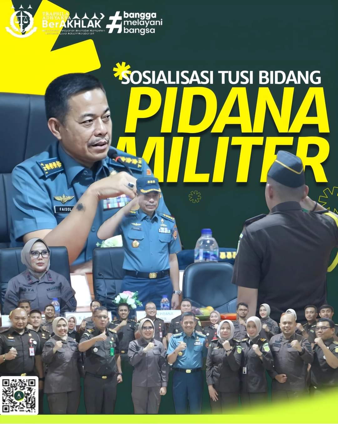 Inhil - Asisten Pidana Militer Kejaksaan Tinggi Riau Kolonel Laut (H) Faisol, S.H melaksanakan Sosialisasi Tugas & Fungsi Bidang Pidana Militer di Kejaksaan Negeri Indragiri Hilir, Kamis (26/10/2023).Dalam mengawali kunjungan kerja sebagaimana salah satu program kerja utama jajaran bidang pidmil, Aspidmil memberikan arahan kepada jajaran Kejari Inhil terutama terkait pola dan mekanisme koodinasi dalam penanganan perkara yang melibatkan yustisiabel sipil bersama militer baik dalam