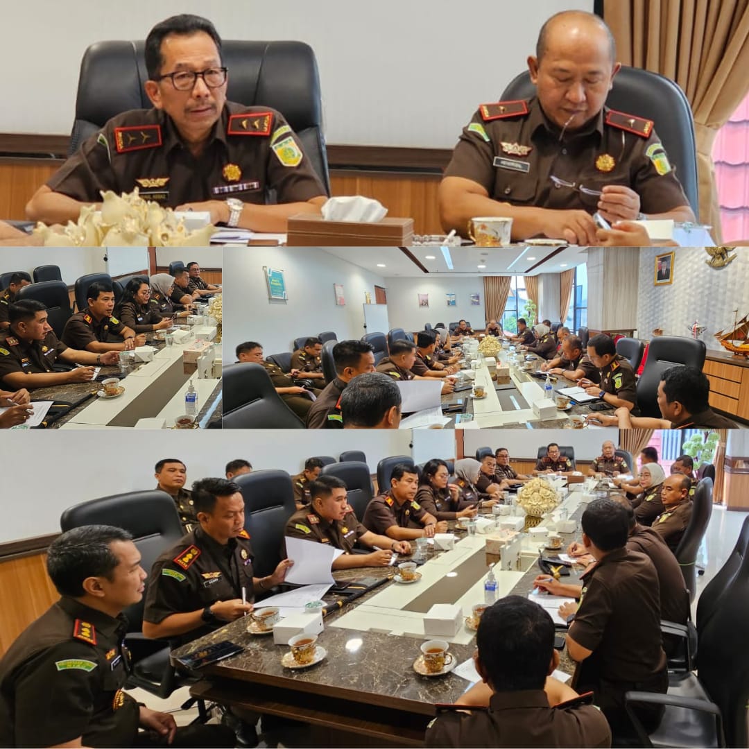 Pekanbaru - Kepala Kejaksaan Tinggi Riau (Kejati) Riau Akmal Abbas SH MH melakukan briefing dengan para Asisten dan Koordinator di lingkungan Kejati Riau dan Kepala Kejaksaan Negeri (Kejari) se- wilayah Riau, Rabu Tanggal 08 November 2023 sekira pukul 10.00 Wib, di Ruang Rapat Kepala Kejaksaan Tinggi Riau.Dalam briefing tersebut, Kejati Riau Akmal Abbas, SH MH menyampaikan kepada Kepala Kejaksaan Negeri Se- Wilayah Riau beserta jajaran agar lebih mengoptimalkan penanganan perkara Tindak Pidana