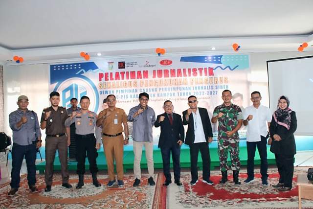 Bangkinang - Pelaksana Tugas Ketua Umum Dewan Pimpinan Pusat (DPP) Perhimpunan Jurnalis Siber Mahmud Marhaba menghadiri langsung Pengukuhan Dewan Pimpinan Cabang Perhimpunan Jurnalis Siber (DPC PJS)