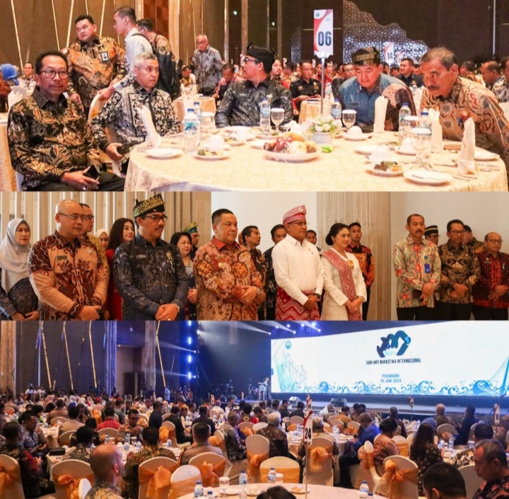 Pekanbaru - Kepala Kejaksaan Tinggi Riau Akmal Abbas, S.H., M.H menghadiri kegiatan Hari Anti Narkotika Internasional (HANI) yang dilaksanakan di di SKA Convention & Exhibition Center, Kota Pekanbaru, Provinsi Riau, Rabu Tanggal 26 Juni 2024.Kegiatan HANI ini dengan tema "The Evidence is Clear: Invest in Prevention, Masyarakat Bergerak, Bersama Melawan Narkoba Mewujudkan Indonesia Bersinar".Dalam penyampaiannya, Kepala Badan Narkotika Nasional (BNN) Republik Indonesia Marthinus Hukom,