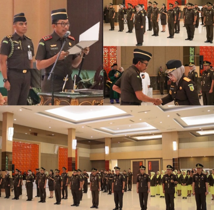 Pekanbaru - Kepala Kejaksaan Tinggi Riau Akmal Abbas, S.H., M.H melantik Wakil Kepala Kejaksaan Tinggi Riau, Asisten Pembinaan, Asisten Pidana Umum, Asisten Pidana Khusus, Asisten Perdata & Tata Usaha Negara, Kepala BagianTata Usaha pada Kejaksaan Tinggi Riau dan Kepala Kejaksaan Negeri Pekanbaru, Dumai, Rokan Hilir, Bengkalis dan Indragiri Hulu.Pelaksanaan pelantikan pejabat Adhyaksa Riau ini di Aula Sasana H.M Prasetyo, Gedung Satya Adhi Wicaksana Kejaksaan Tinggi Riau, pada hari