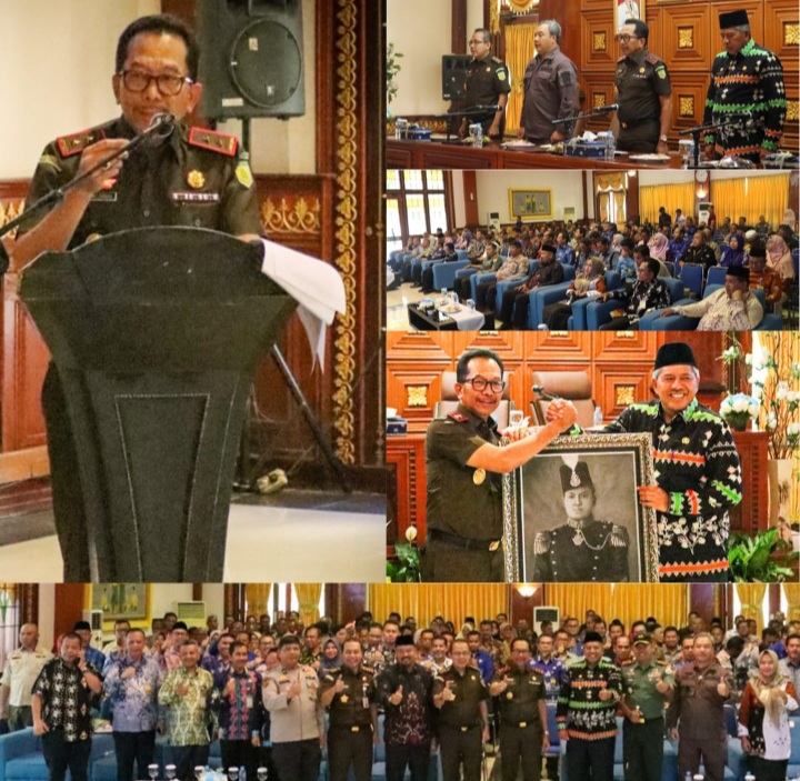 Siak Indrapura - Kepala Kejaksaan Tinggi Riau Akmal Abbas, S.H., M.H didampingi oleh Asisten Pembinaan Kejaksaan Tinggi Riau Romy Rozali, S.H., M.H dan Asisten Tindak Pidana Khusus Kejaksaan Tinggi Riau Zulfikar Nasution, S.H., M.H memberikan penyuluhan hukum kepada para pejabat Pemerintah Kabupaten Siak.Kegiatan penyuluhan hukum ini dilaksanakan di Kantor Bupati Siak, Siak Sri Indrapura, Kabupaten Siak, Provinsi Riau, Kamis Tanggal 20 Juni 2024 sekira pukul 13.30 WIB.Dalam sambutannya, Bupati