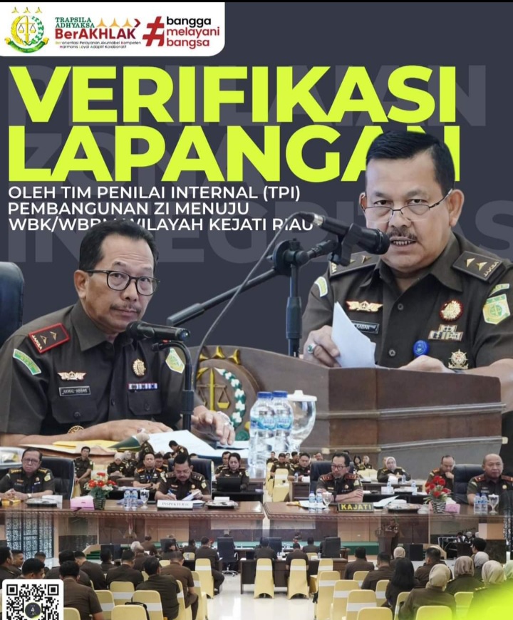 Pekanbaru - Kepala Kejaksaan Tinggi Riau Akmal Abbas, SH., MH mengikuti kegiatan Verifikasi Lapangan (Verlap) dari Tim Penilai Internal (TPI) yang dipimpin oleh Inspektur IV pada JAM WAS Kejagung RI Edyward Kaban, SH MH, di Aula HM Prasetio Kejaksaan Tinggi Riau, Selasa (07/5/2024).Adapun pelaksanaan verlap pada hari ini diagendakan terhadap satuan kerja Kejati Riau (WBBM) dan Kejari Bengkalis, Kep.Meranti, Rohul dan Rohil (WBK). Dimana Kejari Pelalawan, Kejari Inhu, Kejari Inhil, Kejari Siak