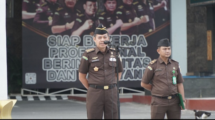 Pekanbaru - Asisten Tindak Pidana Khusus Kejaksaan Tinggi Riau Imran Yusuf, S.H., M.H menjadi Penerima Apel Kerja Pagi, yang dilaksanakan di halaman kantor Kejaksaan Tinggi Riau, Senin (27/5/2024).Apel pagi Kejaksaan Tinggi Riau ini diikuti oleh para Asisten, para Koordinator, para Kasi dan Jaksa Fungsional beserta seluruh Pegawai dan Honorer pada Kejaksaan Tinggi Riau.Asisten Pidana Khusus Kejaksaan Tinggi Riau Imran Yusuf, S.H., M.H menyampaikan kepada seluruh jajaran untuk meningkatkan