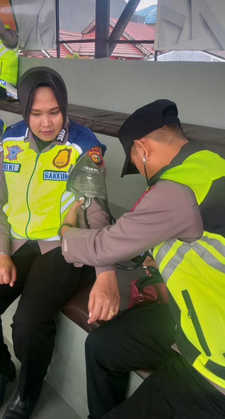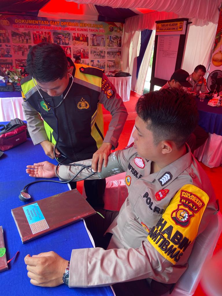 Pekanbaru - Subsatgas Dokkes Banops Operasi Lilin Lancang Kuning 2023-2024 Polda Riau melaksanakan pelayanan kesehatan Preventif, Promotif dan Kuratif kepada personel yang terlibat dalam ops lilin lancang kuning 2023-2024, masyarakat dan driver bus atau minibus, Sabtu 30/12/2023.Kegiatan tersebut guna memastikan kesehatan personel yang terlibat ops lilin lancang kuning 2023-2024 tetap fit dan sehat.Kabid Humas Polda Riau Kombes Pol Hery Murwono menyebut, kegiatan itu merupakan bentuk