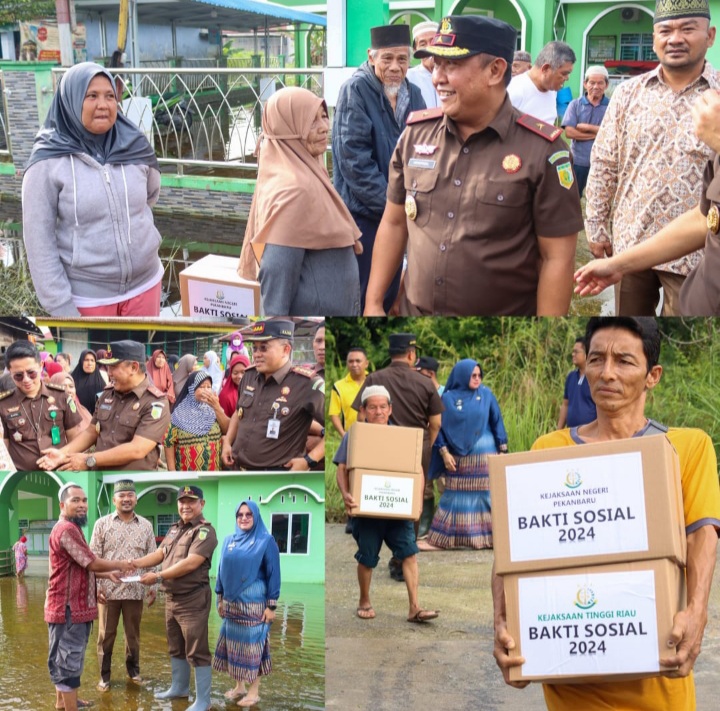 Pekanbaru - Pasca Kelurahan Sri Meranti Kecamatan Rumbai, Kota Pekanbaru dilanda banjir, Wakil Kepala Kejaksaan Tinggi Riau Hendrizal Husin, S.H., M.H menyambangi warga dalam rangka kegiatan Bakti Sosial Kejaksaan Tinggi Riau Tahun 2024, Jumat Tanggal 19 Januari 2024 sekira pukul 08.30 Wib.Sebelum Wakil Kepala Kejaksaan Tinggi Riau beserta rombongan melaksanakan kegiatan Bhakti Sosial di Kelurahan Sri Meranti Kecamatan Rumbai kota Pekanbaru tersebut, secara seremonial Kepala Kejaksaan Tinggi
