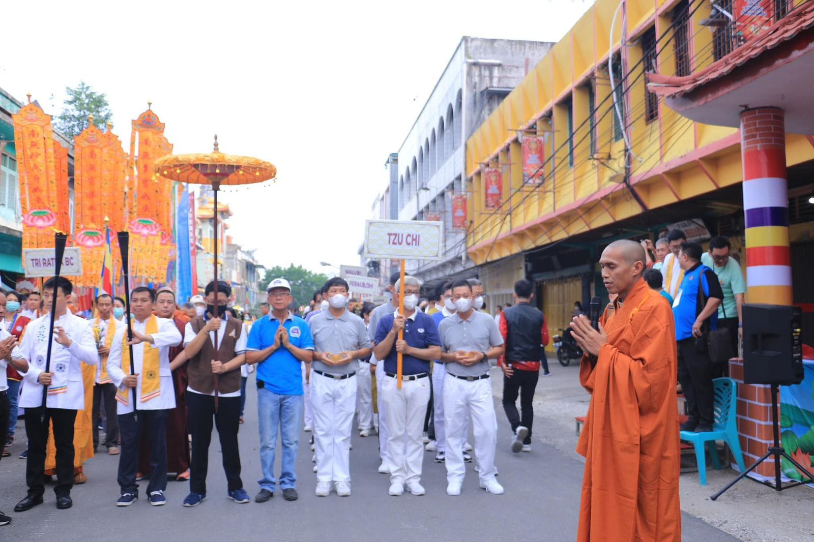 Pekanbaru - Penjabat (Pj) Wali Kota Pekanbaru Muflihun dan utusan Kementerian Agama (Kemenag) RI melepas Pawai Waisak Bersama di Jalan Karet, Sabtu (3/6). Pawai Waisak Bersama ini diikuti 2.007 orang.Ketua Panitia Pawai Waisak Bersama Romo Herman Surya mengatakan, pawai ini diikuti 40 kontingen. Kontingen ini berasal dari lembaga keagamaan Buddha, lembaga pendidikan, dan organisasi kemasyarakatan (ormas) Tionghoa."Total peserta yang terdaftar 2.007 orang," ujarnya.Kesempatan yang sama, Pj Wali