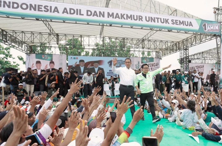 Tegal - Pasangan Capres-Cawapres nomor urut 01, Anies Baswedan-Muhaimin Iskandar atau AMIN pada Selasa (30/1) pagi menggelar kampanye akbar di Lapangan Pendawa, Slawi, Kabupaten Tegal, Jawa Tengah.