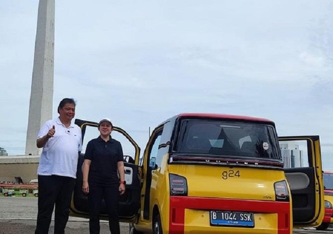 Airlangga Beri Mobil Listrik Kuning-Merah G24 ke Puan Maharani