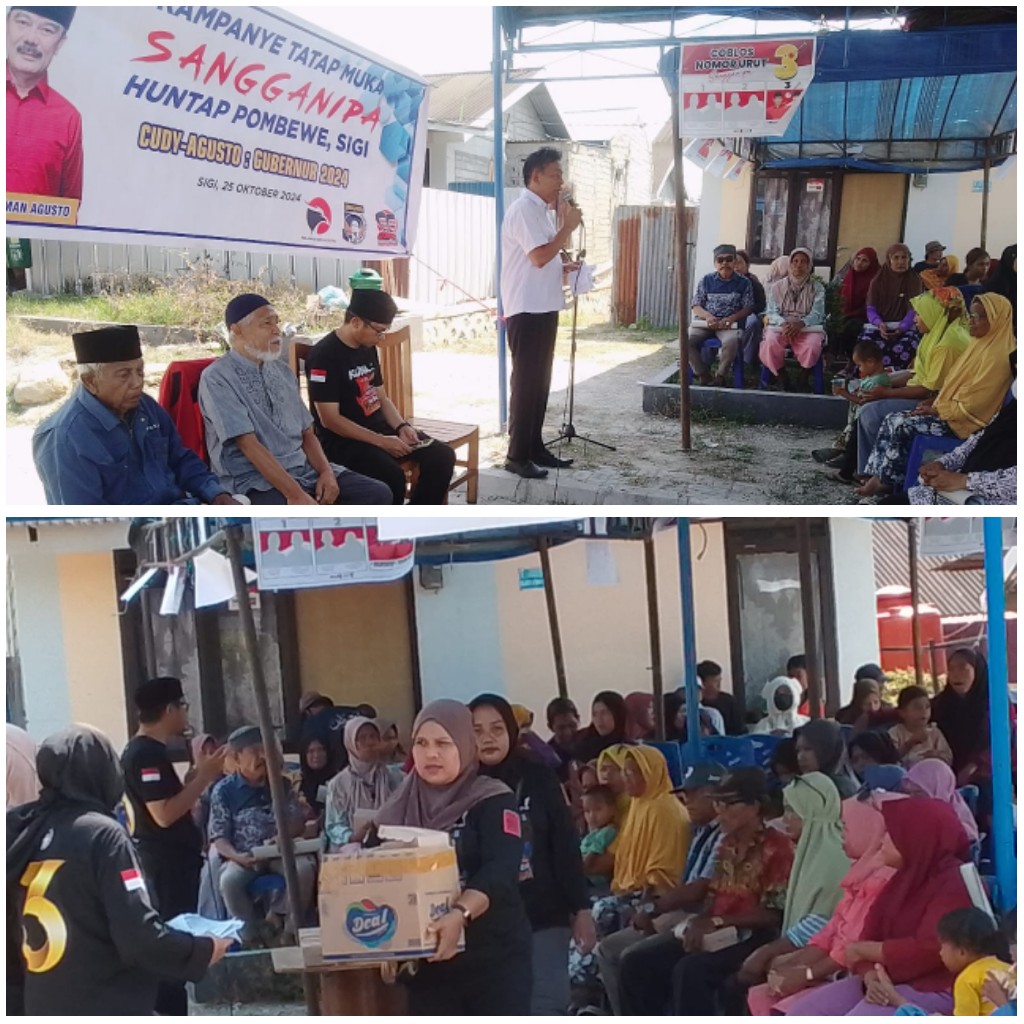 Sigi - Walau ditengah terik menggigit langit Sigi, tidak rintangi ratusan warga penghuni HUNTAP (Hunian Tetap) Kawasan Pombewe hadiri Kampanye Cudy-Agusto yang digelar oleh Relawan BANTAYA Sangganipa. BANTAYA adalah akronim dari Barisan Teman Yahdi Basma, legislator dari NasDem yang 2 (dua) periode di DPRD Provinsi. 3 (tiga) bulan belakangan, BANTAYA sebagai salah satu Relawan Cudy-Agusto, aktif live-in di lapangan sejak sebelum masa kampanye. "Program politik kami di dalam masa kampanye ini,
