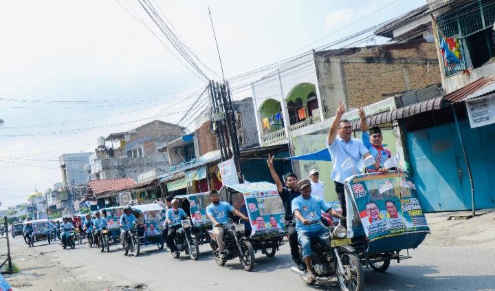 Deliserdang - Calon Bupati Deli Serdang nomor urut 2 dr. Asri Ludin Tambunan disambut ribuan masyarakat Perumnas Mandala saat menghadiri deklarasi Relawan Asri Ludin dan Lom Lom (Asli Lo) di lapangan cucakrawa Perumnas Mandala, Minggu (28/10/2024).Mereka Disambut oleh puluhan abang becak bermotor (betor), Asri Ludin Tambunan terlihat menaiki betor sembari berdiri dan memberikan semangat kepada masyarakat yang ia lalui, Warga merasa sangat Gembira melihat kedatangan dr Asri Ludin Tambunan